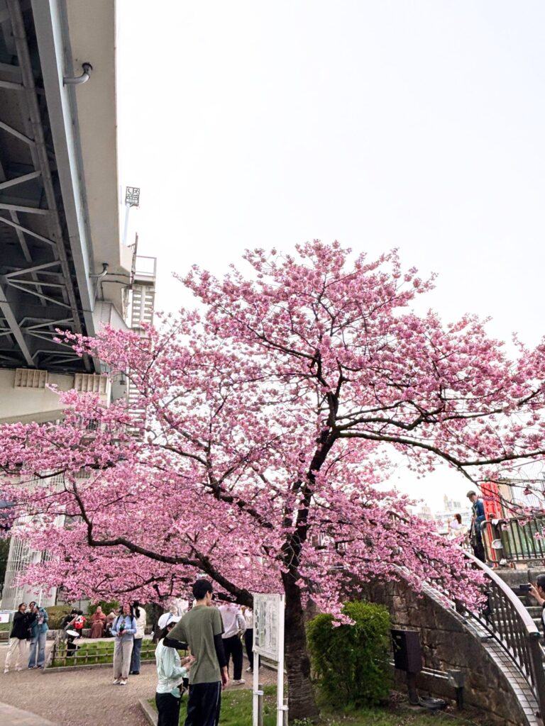 今回のコース最大のハイライト。隅田川沿いに続く桜並木は、見上げると空が桜で覆われるほどの迫力で、とにかく圧巻のひと言でした。