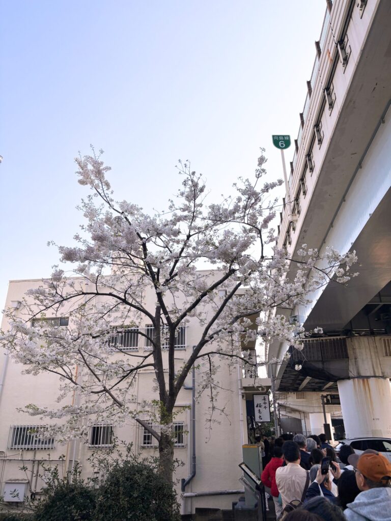 買ったあとは、すぐそばの桜を眺めながらいただきました🌸 店の脇にも桜の木があり、こちらも満開でとても風情がありました。